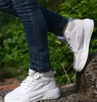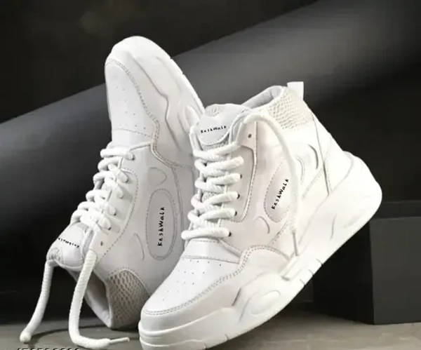 Name : Comfortable High-Top Skate Sneakers - White Shoes, Thick Sole, Versatile Lace-Up Casual Footwear for Outdoor Activities & Hiking